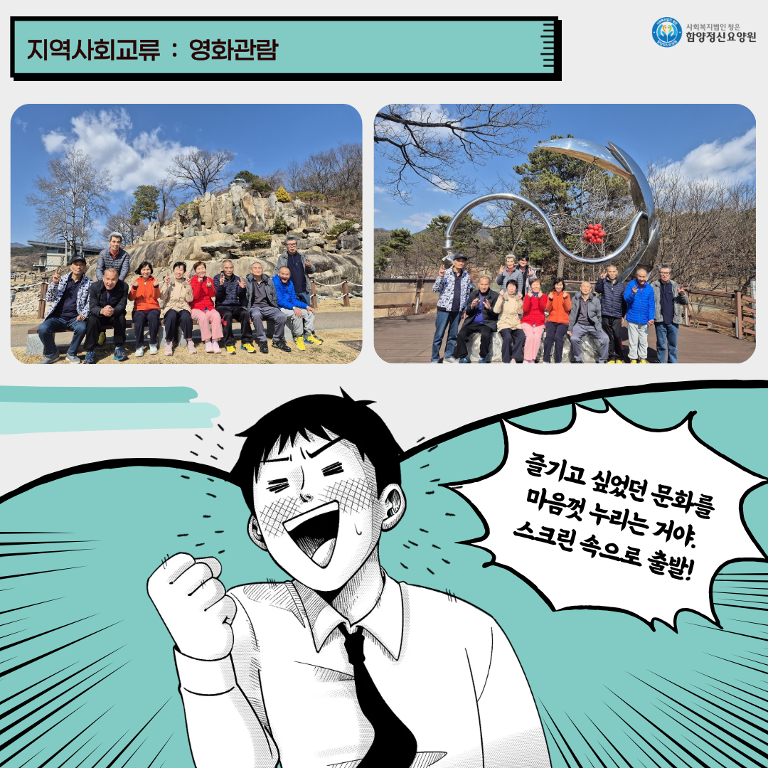 지역사회교류 활동: 영화관람, 함께하는 지역사회 나들이 등
